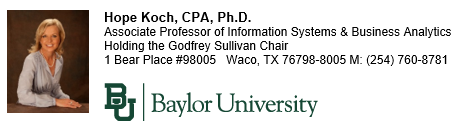 Hope Koch (Coordinating Co-editor), Hankamer School of Business, Baylor University, USA, Hope_Koch at baylor.edu