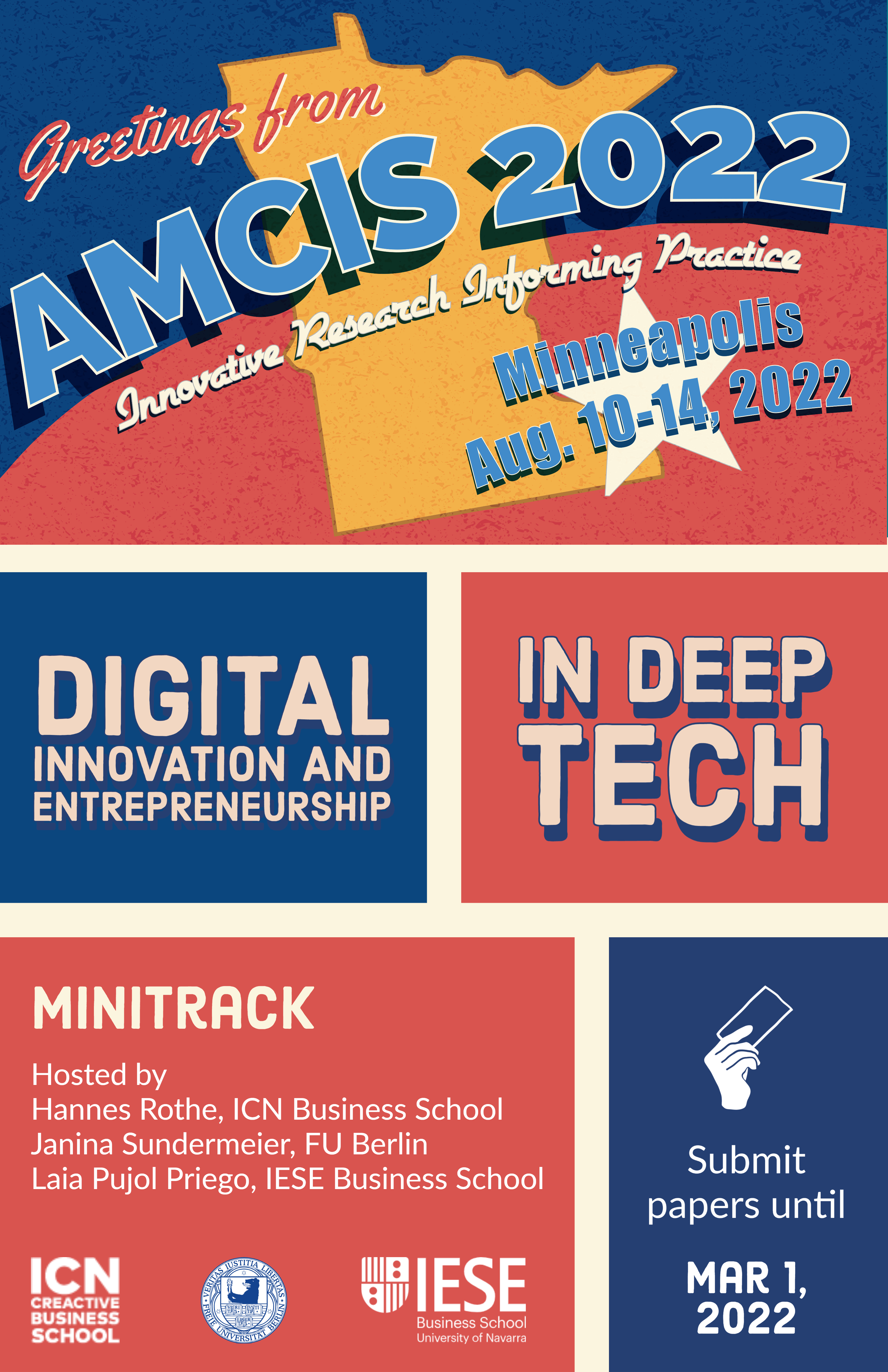 we hereby invite you to send us your most exciting work on "Digital Innovation and Entrepreneurship in Deep Tech"<https://amcis2022.aisconferences.org/submissions/track-descriptions/#toggle-id-4> for American Conference on Information Systems (#amcis22) in Minneapolis.