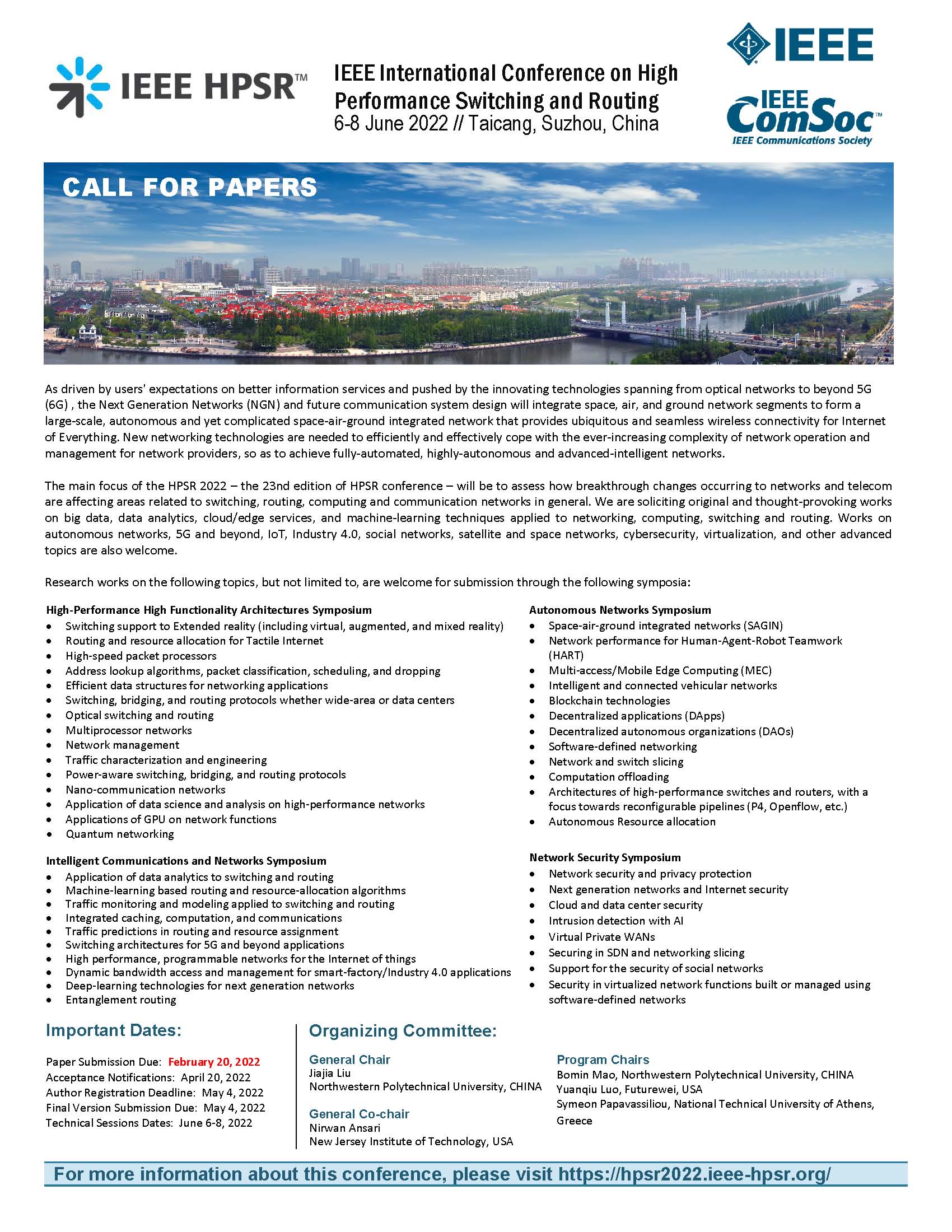 IEEE HPSR 2022 Call For Papers