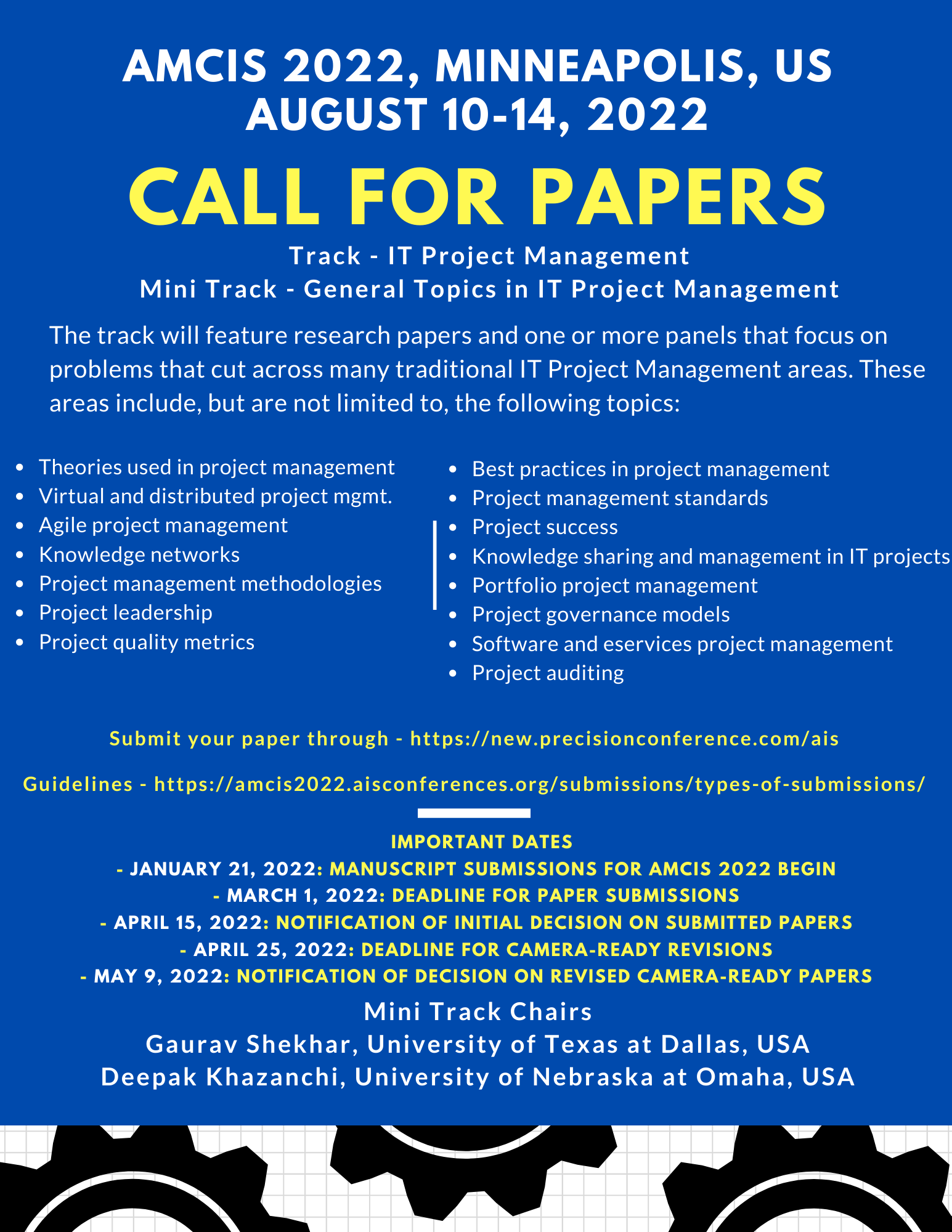 [AISWorld] [CfP] AMCIS 2022: Mini Track - General Topics in IT Project Management
