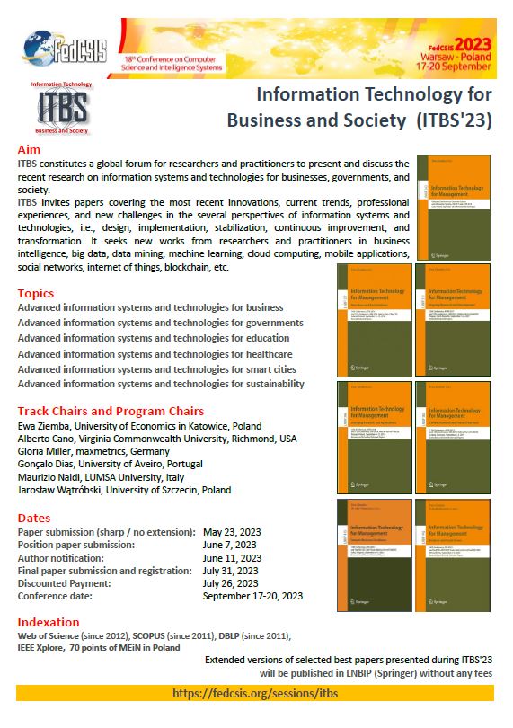 Track 4: ITBS'23, https://fedcsis.org/sessions/itbs;